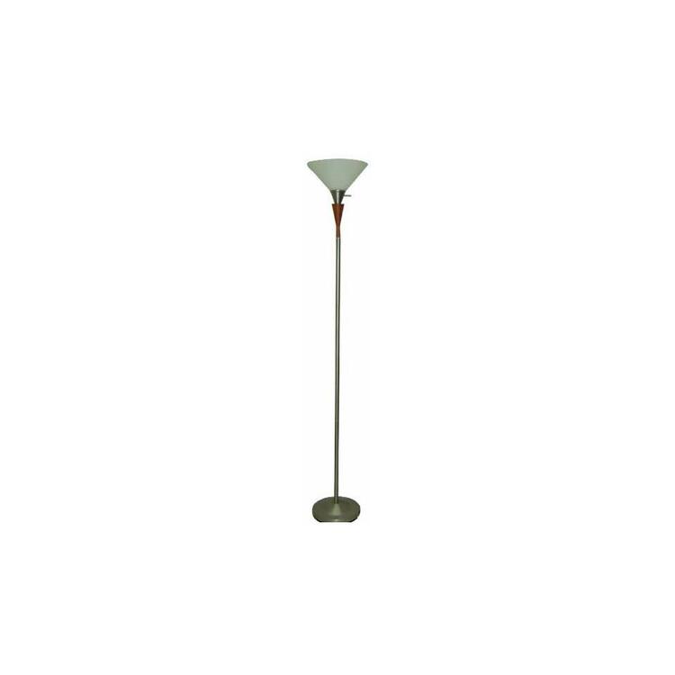 Sleek Pewter and Oak Torchiere Lamp - 4D Concepts