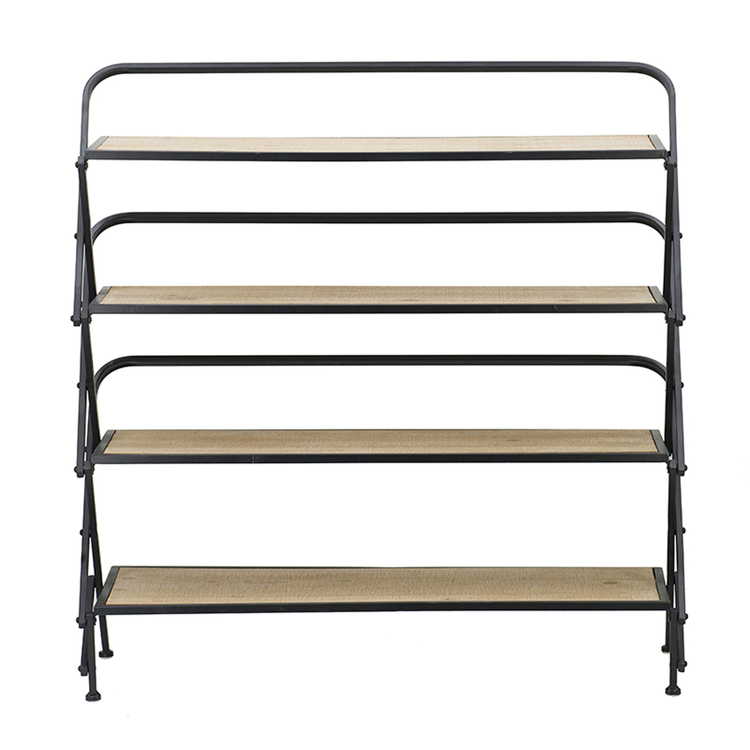 • A&B Home 4 Shelf Stand with U-Back and X-Frame - Natural, Black Finish image - 1