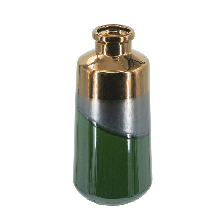 • A&B Home Ombre Ceramic Vase - Bronze, Silver & Green - 12" image - 1