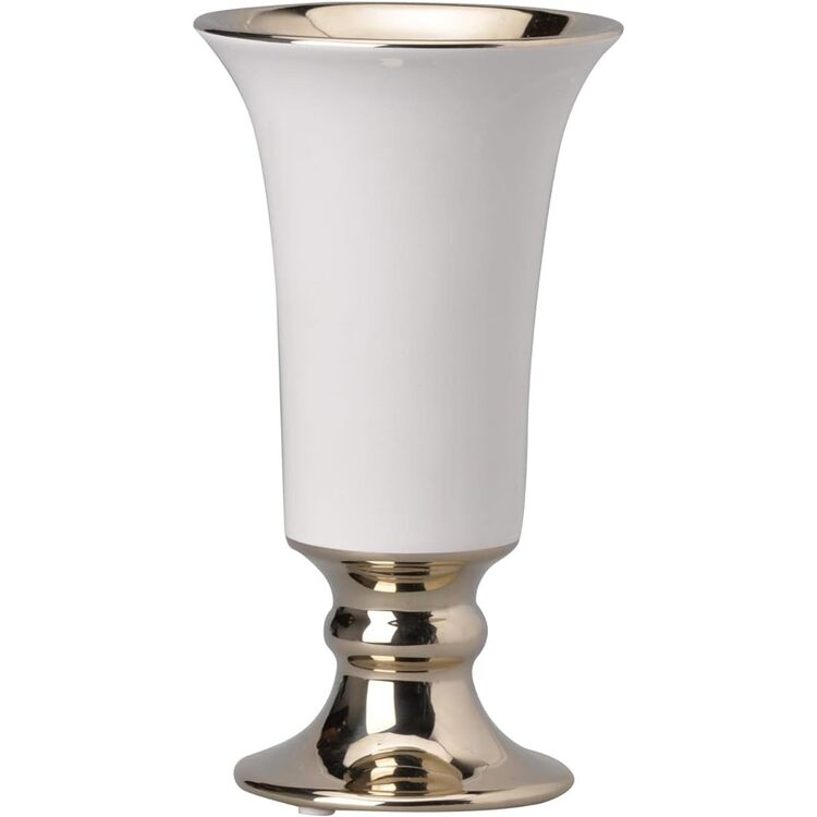 • A&B Home Decorative Urn Vase - 12 Inch Pedestal - Gold Accent - White image - 1