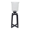 Glass Candle Holder with Iron Base - Large - 9"Dia. x 23" - Black Base - Clear