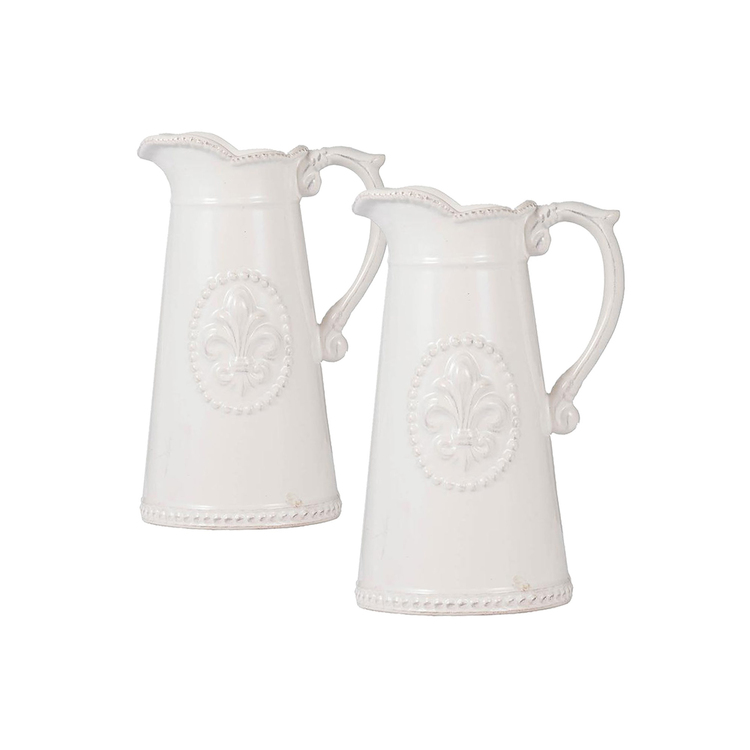 • A&B Home Louis Fleur-De-Lis Pitcher - Set of 2 - 6" x 5" x 9" - White image - 1