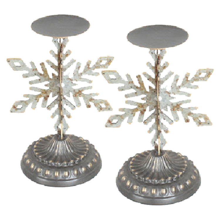 • A&B Home Snowflake Candle Holder - Set of 2 - 6"Dia. x 12" - Gray image - 1