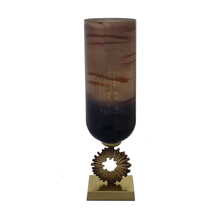 A&B Home Zandros Glass Vase with Aluminum Base - 6"Dia. x 21.5"H - Gold/Dark Brown