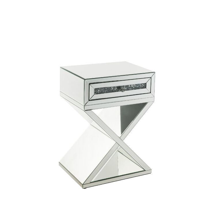 Mirrored Accent Table with Faux Diamonds Inlay, Modern Design - Acme