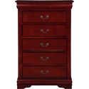 The Louis Philippe Chest in cherry finish is equipped with brushed nickel metal hardware that lends antique elegance. Store bedding, clothing, and more in the five roomy drawers. Choose from available finish options to best coordinate with existing bedroom furniture.