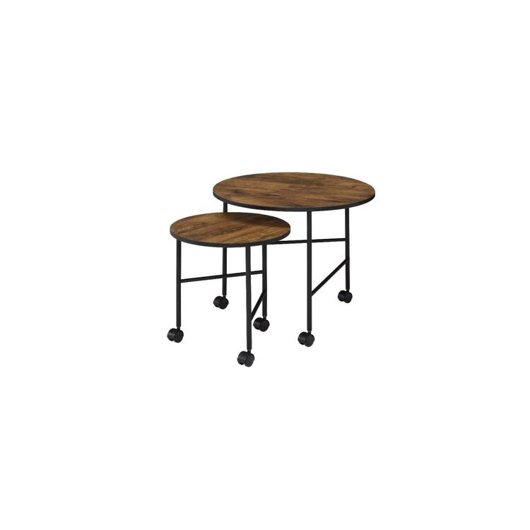 Vintage Oak Round Nesting Tables Set 2 Piece - Acme