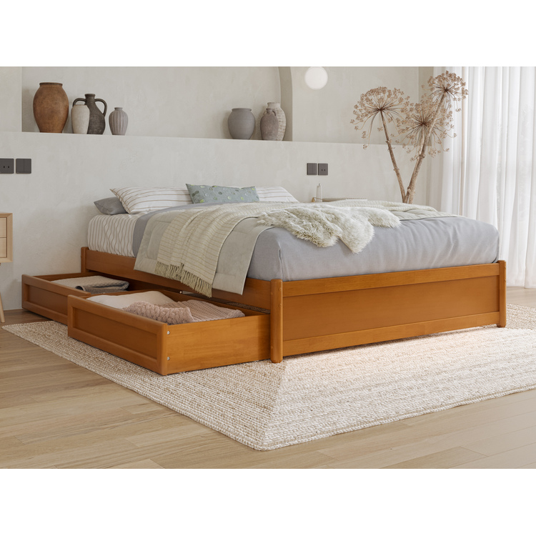 AFI Furnishings Barcelona Full Panel Platform Bed with Storage Drawers, Light Toffee