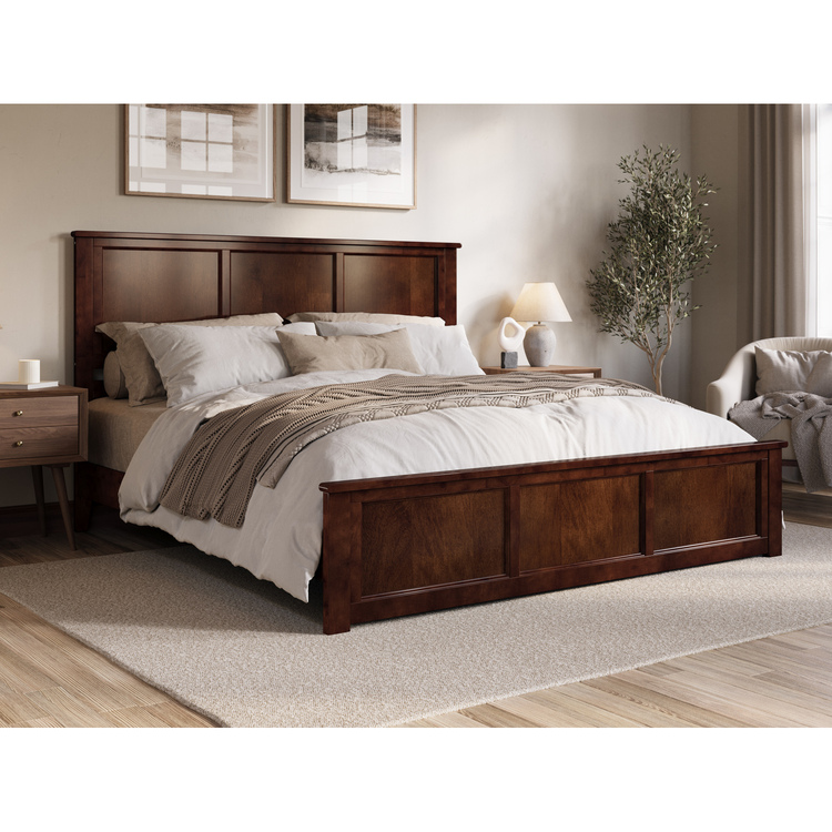 AFI Furnishings Charlotte King Solid Wood Low Profile Platform Bed with Matching Footboard in Walnut