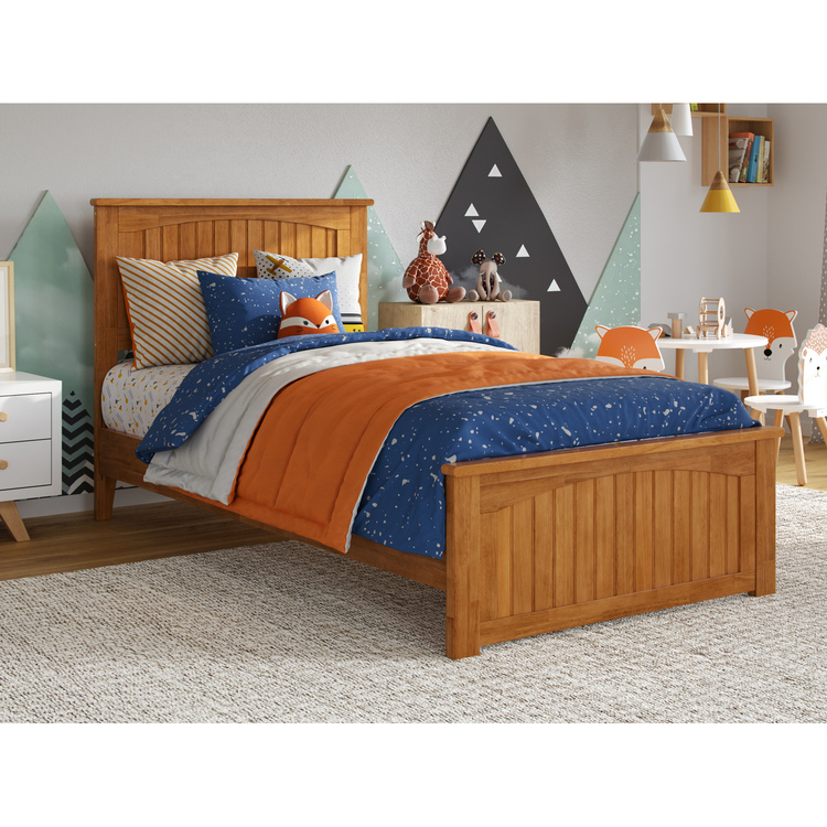 AFI Furnishings Naples Twin Solid Wood Low Profile Platform Bed with Matching Footboard in Light Toffee