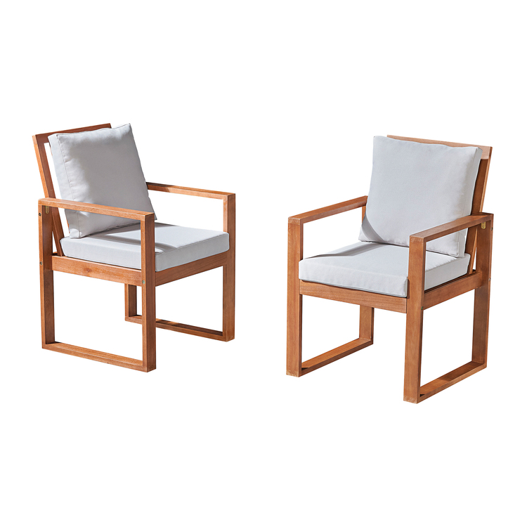 • Weston Eucalyptus Wood Outdoor Dining Chairs with Gray Cushions, Set of 2 image - 1