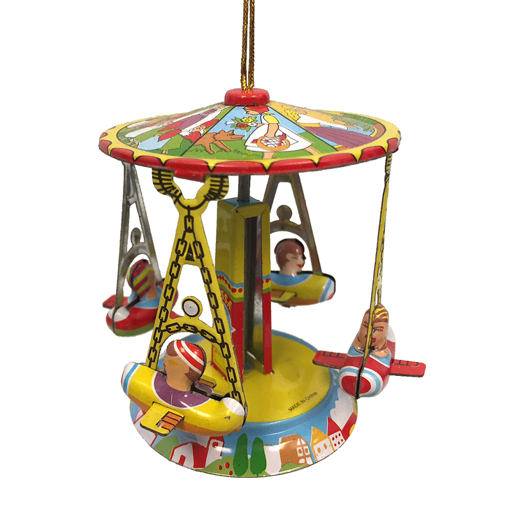 Alexander Taron Vintage Carousel Ornament - Spinning Tin Airplane Decor