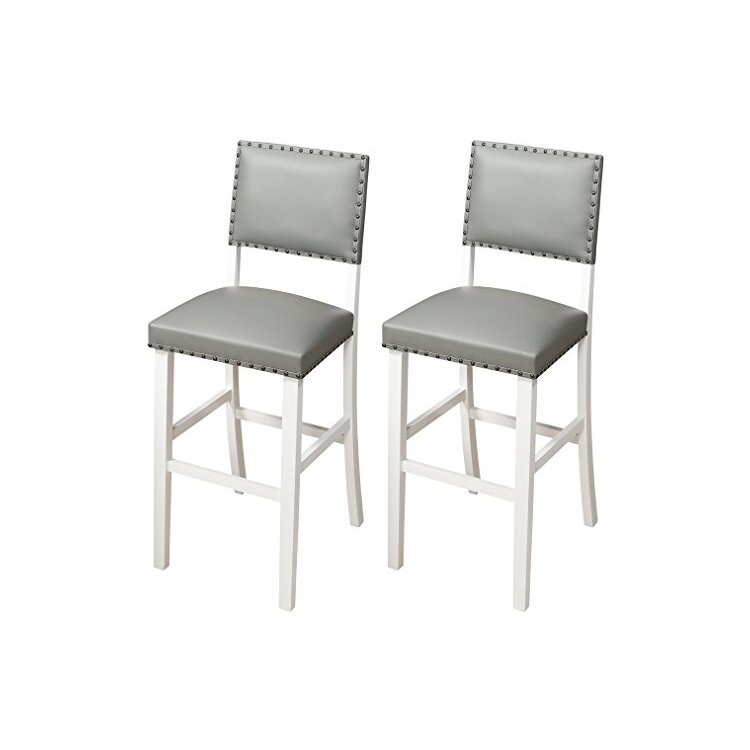 Angel Line Kirkland 29" Bar Stool-White w/ Gray Cushion-set of 2