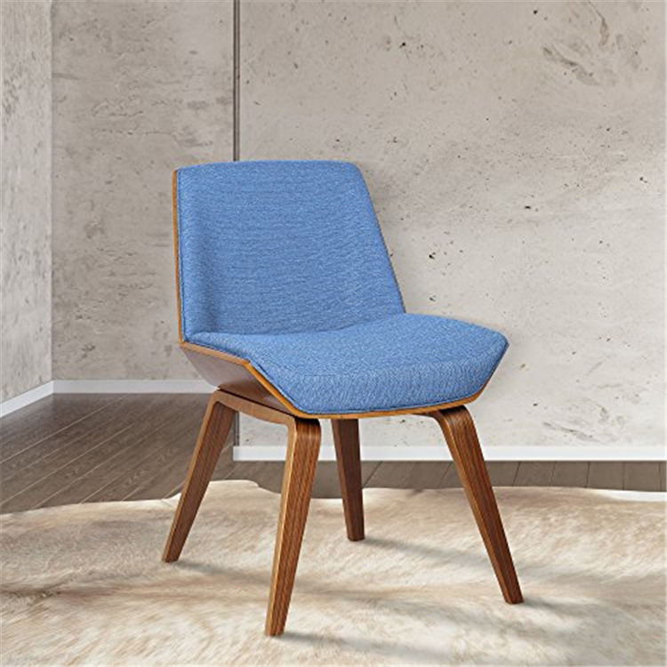 • Mid - Century Side Chair Walnut Wood Finish Blue Fabric Upholstery - Armen Living image - 1