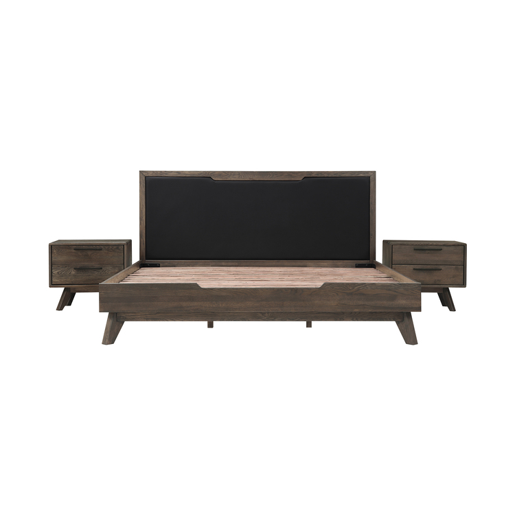 • Armen Living Astoria 4 Piece Queen Bedroom Set in Oak with Black Faux Leather image - 1