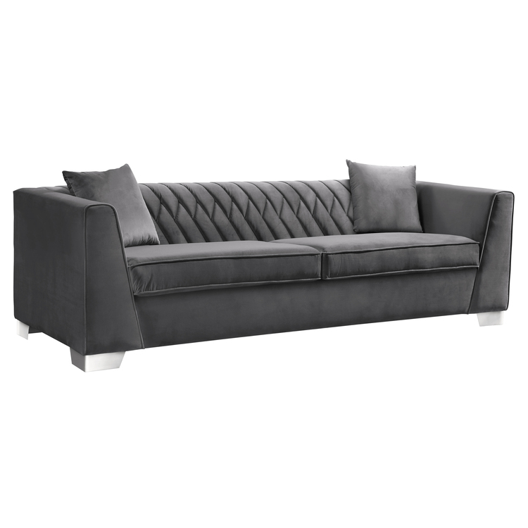 • Cambridge Contemporary Sofa in Brushed Stainless Steel and Dark Gray Velvet image - 1