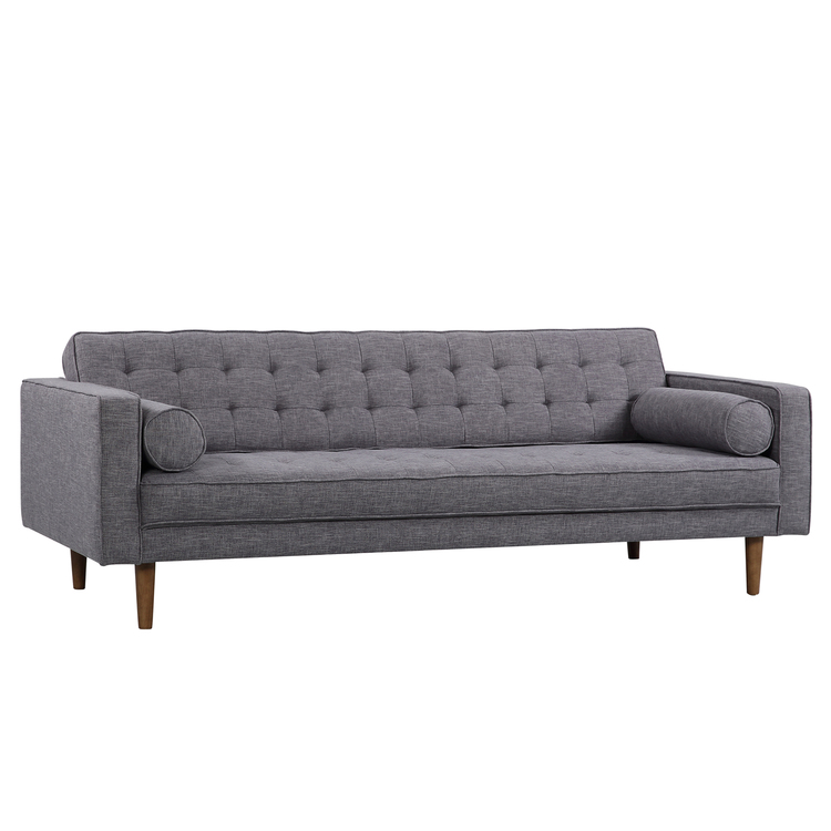 Element Mid-Century Modern Sofa in Dark Gray Linen and Walnut Legs