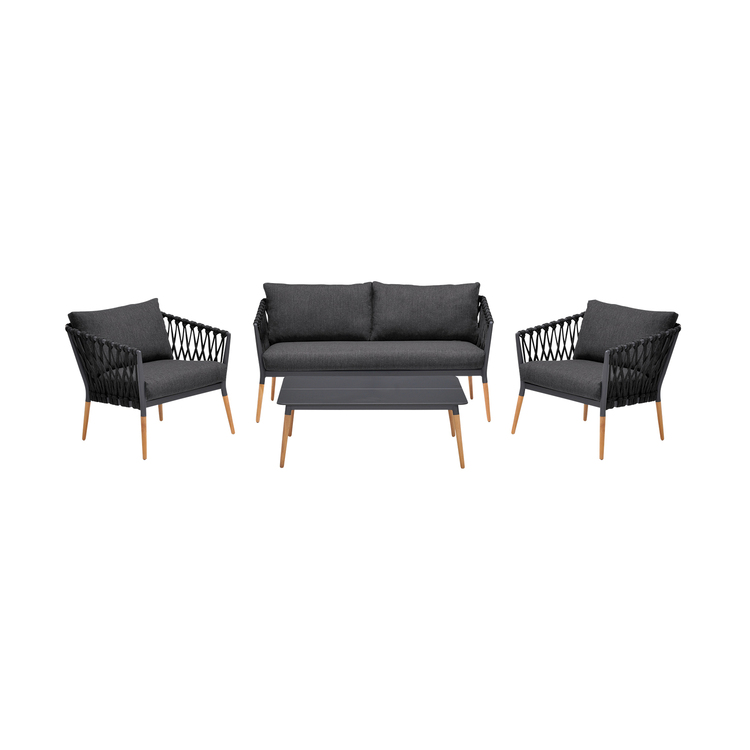 • Dark Grey Olefin Outdoor Sofa Seating Set with Teak Frame and Rope Cording. image - 1