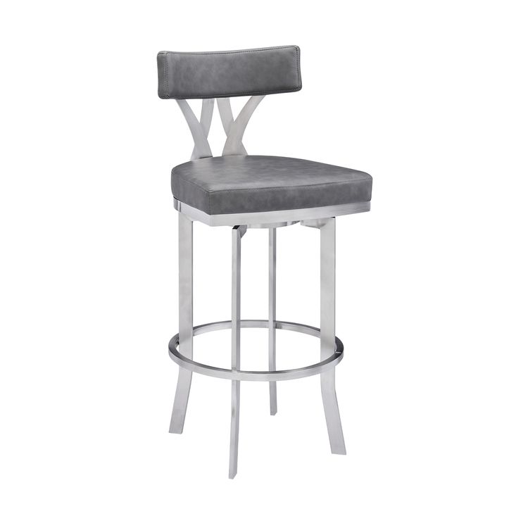 • 26 Counter Height Barstool Stainless Steel Vintage Grey Faux Leather - Armen Living image - 1