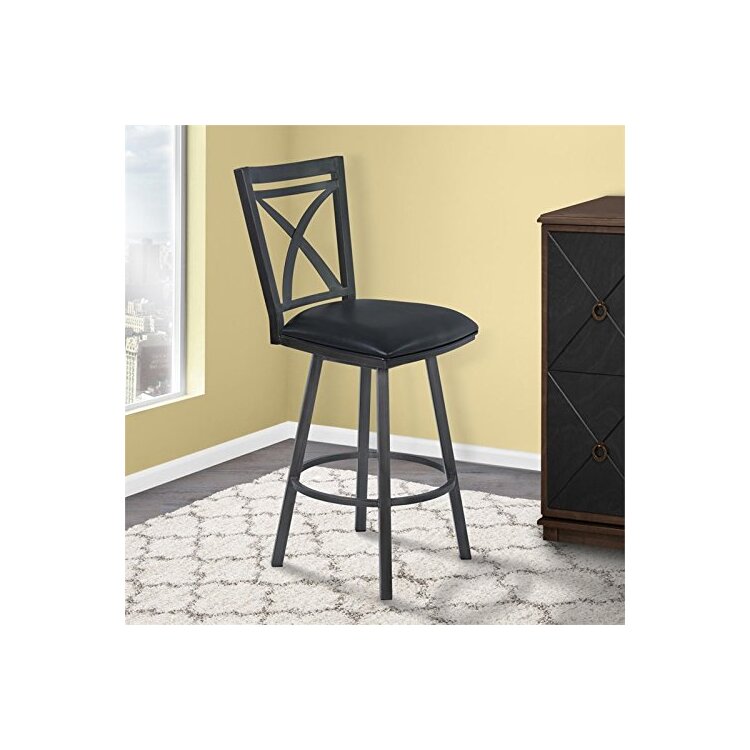 Armen Living Nova 30" Bar Height Metal Swivel Brastool in Ford Black Pu and Mineral Finish
