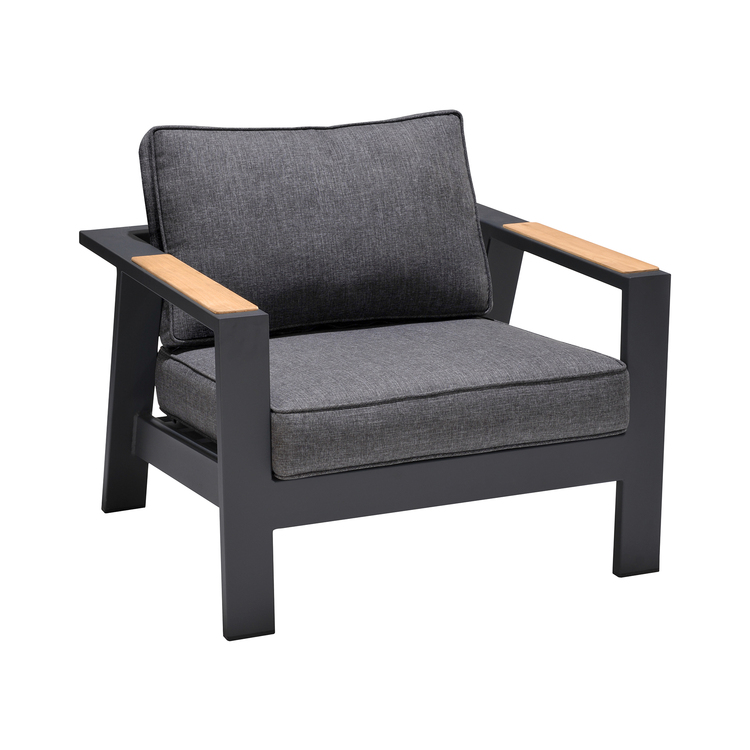 • Armen Living Palau Outdoor Chair in Dark Grey with Natural Teak Wood Accent and Cushions image - 1
