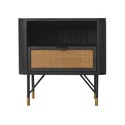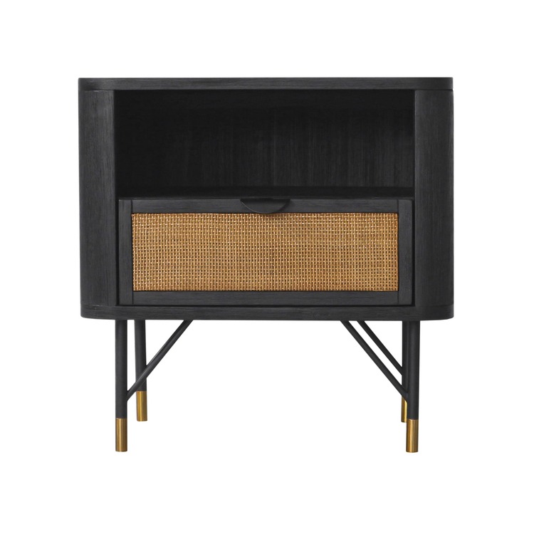 Armen Living Saratoga Nightstand in Black Acacia with Rattan