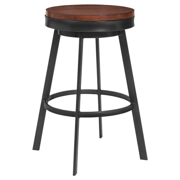 • Armen Living Topeka 26" Counter Height Barstool in Mineral Finish and Walnut Wood Seat image - 1