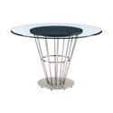 • Armen Living Veronica 48" Round Dining Table in Brushed Stainless Steel Base with Walnut Panel and Glass Tabletop image - 1