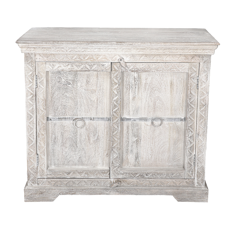 • ASHLUXE White Antique Cabinet - 2 Door Solid Wood Storage image - 1