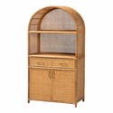 • bali & pari Mairen Arched Natural Rattan Storage Cabinet - Handwoven Pole Rattan Hutch with Two Drawers and Doors, Boho Coastal Display Cabinet for Dining Room or Living Space image - 1