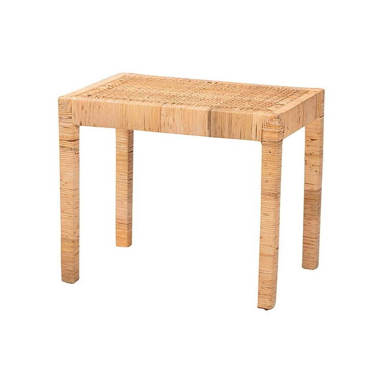 • Baxton Studio Abelia Modern Bohemian Natural Rattan and Mahogany Wood Short Accent Bench image - 1
