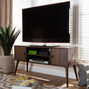 • Walnut Brown Mid - Century Modern Wood TV Stand 2 - Door Flat Panel Cabinet - WholeSale Interiors image - 1