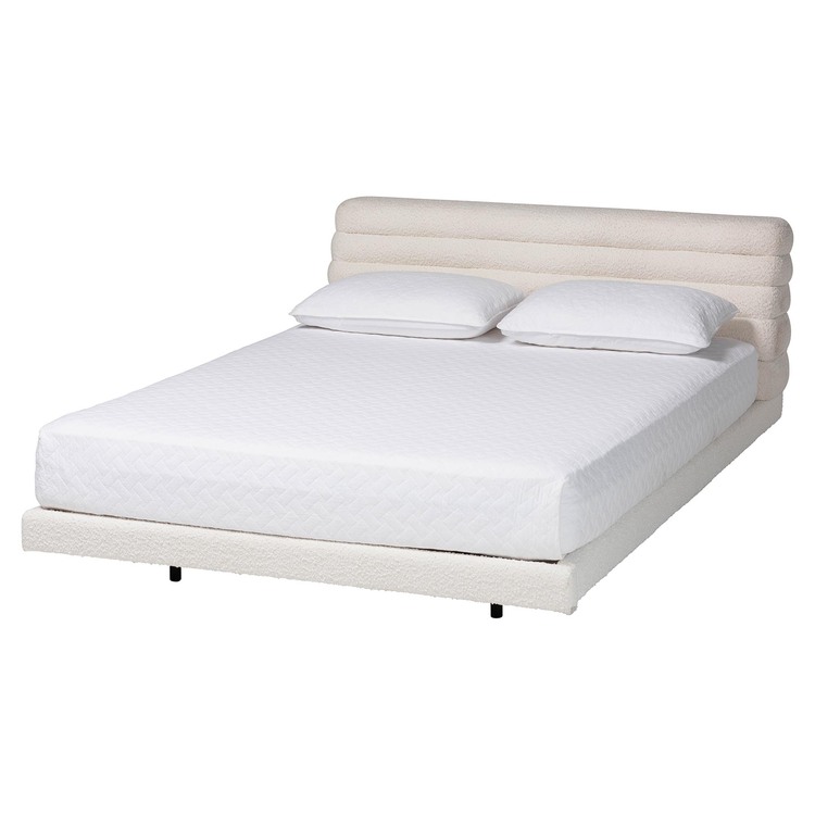 • Baxton Studio Alfie Boucle Floating Bed with Channel Tufted Headboard - Low Profile Minimalist Platform Bed Frame, Cream, King image - 1
