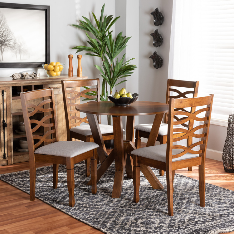 • Baxton Studio Ariane Modern and Contemporary Grey Fabric Upholstered and Walnut Brown Finished Wood 5-Piece Dining Set image - 1
