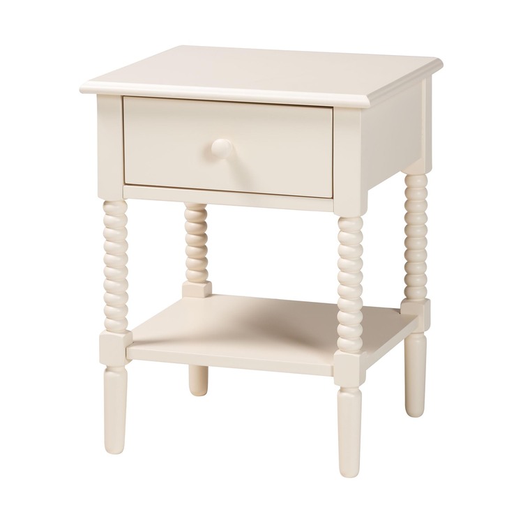 • Baxton Studio Braith Farmhouse Ivory Spindle Wood 1-Drawer Nightstand image - 1
