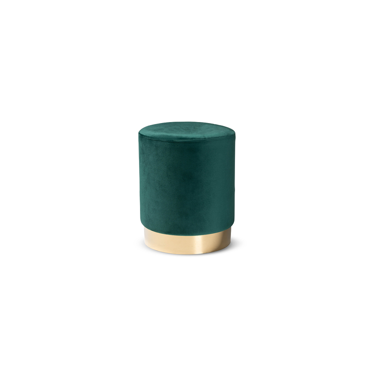 Baxton Studio Chaela Contemporary Glam and Luxe Green Velvet Fabric Upholstered and Gold Finished Metal Ottoman