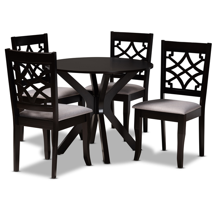 Baxton Studio Elena Modern and Contemporary Grey Fabric Upholstered and Dark Brown Finished Wood 5-Piece Dining Set