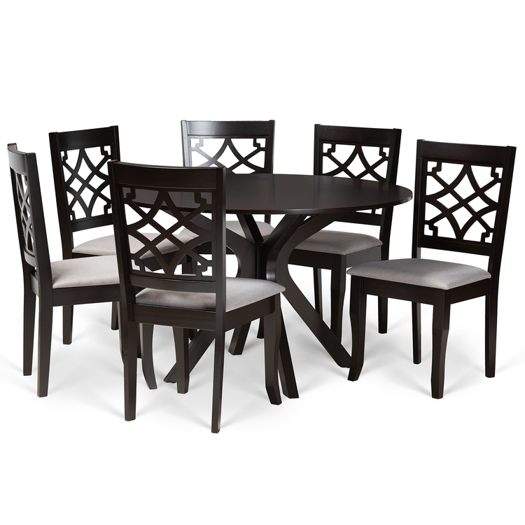 • Baxton Studio Elena Modern and Contemporary Grey Fabric Upholstered and Dark Brown Finished Wood 7-Piece Dining Set image - 1