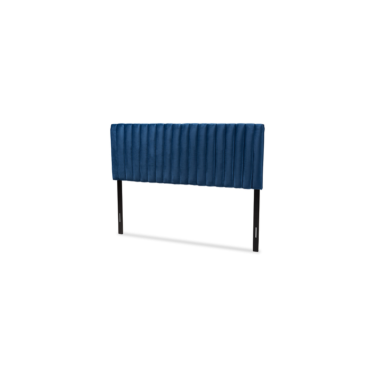 • Baxton Studio Emile Modern and Contemporary Navy Blue Velvet Fabric Upholstered and Dark Brown Finished Wood King Size Headboard image - 1