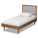 • Baxton Studio Greta Mid-Century Modern Light Grey Fabric Upholstered and Walnut Brown Finished Wood Twin Size Platform Bed image - 1