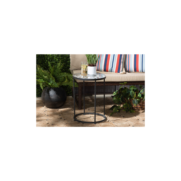 Baxton Studio Kaden Modern and Contemporary Multi-Colored Glass and Black Metal Outdoor Side Table