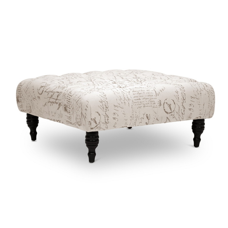 • Baxton Studio Keswick Script Print Modern Tufted Ottoman image - 1