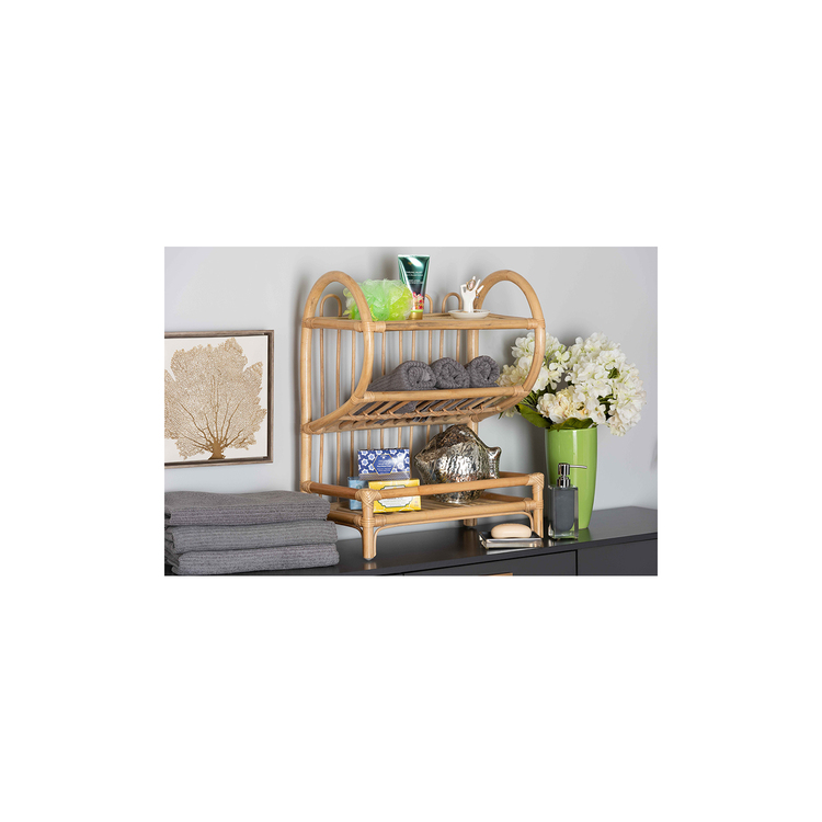 • bali & pari Liora Modern Bohemian Natural Brown Finished Rattan 3-Tier Display Shelf image - 1