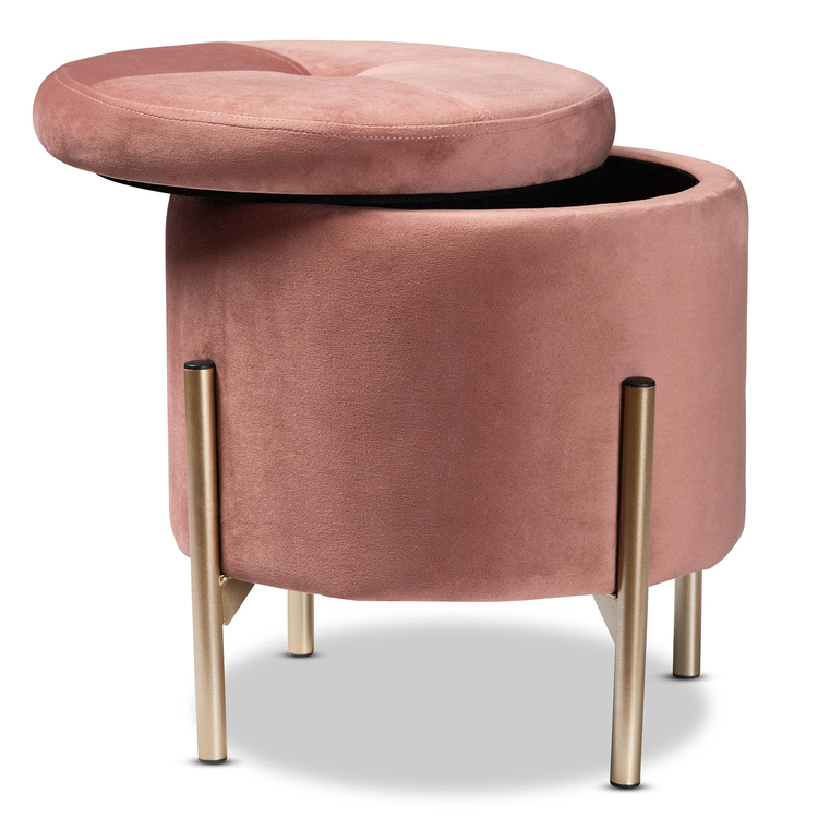 Baxton Studio Malina Contemporary Glam and Luxe Pink Velvet Fabric Upholstered and Gold Finished Metal Storage Ottoman