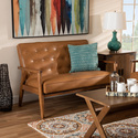 • Baxton Studio Sorrento Mid-Century Modern Tan Faux Leather Upholstered and Walnut Brown Finished Wood Loveseat image - 1