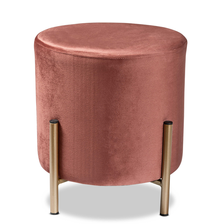 Baxton Studio Thurman Contemporary Glam and Luxe Pink Velvet Fabric Upholstered and Gold Finished Metal Ottoman