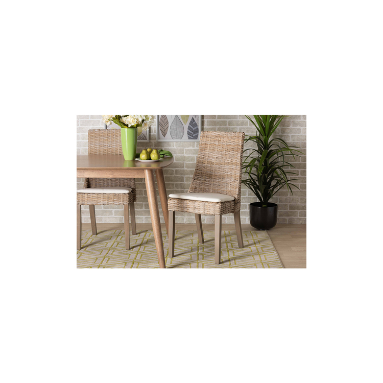 Baxton Studio Toby Modern Bohemian Grey Rattan 2-Piece Dining Chair Set