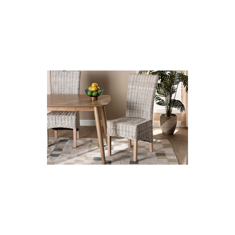 • Baxton Studio Trianna Rustic Transitional Whitewashed Rattan and Natural Brown Finished Wood Dining Chair image - 1