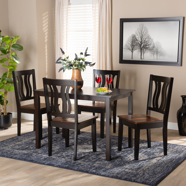 • Baxton Studio Zamira Modern and Contemporary Transitional Two-Tone Dark Brown and Walnut Brown Finished Wood 5-Piece Dining Set image - 1
