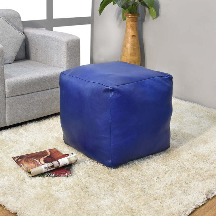 • HomeStock Solid Handmade Eco-Friendly Leather Square 14" x 14" x 14" Blue Pouf image - 1